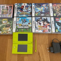 Nintendo DS Lite + 5 spel – fungerar fint! (utan laddare)