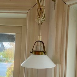 Vit rund Glasglob, glaskupa i opalglas vintage.