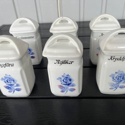 Kryddburkar med rosmotiv