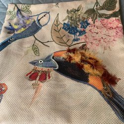 3 st dekorativa kuddvar med olika fåglar, lite fjädrar