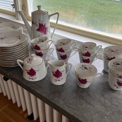 Kaffeservis.rosor Wawel Polen servis assietter kaffekanna gräddkanna skål koppar