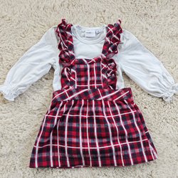 Rödrutig klänning med body, strl 68, julklänning