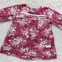 Newbie vinröd klänning med rosmönster, strl 68, julklänning, finklänning