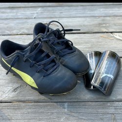 Fotbollsskor (29) och benskydd från Puma