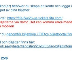 Tänk på att kontrollera datum och att biljetten du köper inte är personlig. I Sverige finns det inga lagliga hinder mot att varje sig köpa, sälja eller byta t.ex. evenemangsbiljetter på andrahandsmarknaden. Detsamma gäller inte i alla länder, ta reda på vad som gäller innan du köper.