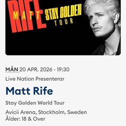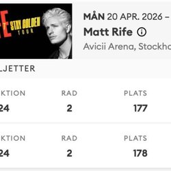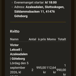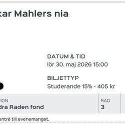 Ska ditt favoritband spela i Sverige? Hann du inte beställa biljett innan de tog slut? Här har du en andra chans. Ungefär hälften av Sveriges befolkning går varje år på en eller fler konserter och spelningar. Självklart finns det dem som går på många fler. Sommarens festivaler drar väldigt många unga och ibland kan det vara svårt att hinna knipa en biljett i tid. Som tur är kan man kolla runt här och med lite tur kan man göra sig ett riktigt fynd! I den här kategorin finns här även presentkort och biljetter till andra typer av events som teater, sportevenemang och mycket mer.