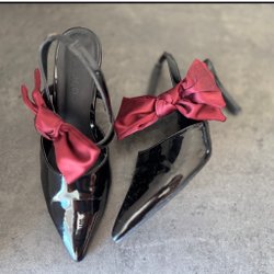 Pumps svarta m. röd rosett, Strl. 37 Jul