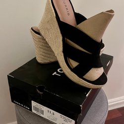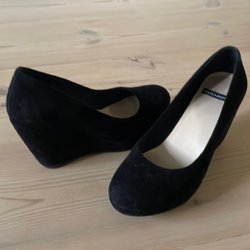 Bianco skor, svarta, kilklack, öppen tå! Äkta mocka/skinn