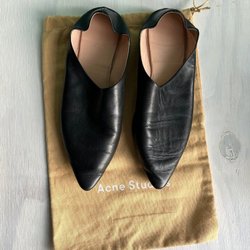 Acne Amina spetsig slip in-sko i svart läder, storlek 38