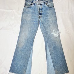 Vintage 70-tal 70s flare Silver Dollar's blåa jeans C42 gulblå puss kram