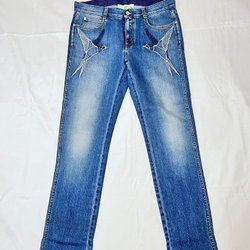 Stella McCartney Blue Embroidered Straight-Leg Jeans Storlek 28