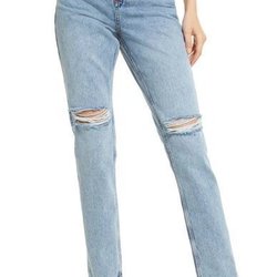 NA-KD blåa jeans, storlek 34 råa kanter nertill