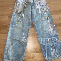 Höga, utsvängda, tighta, låga – jeans finns i alla tänkbara modeller, färger och former. Här kan du hitta annonser för både begagnade jeans och jeans i nyskick. Hitta dina drömjeans för dam hos oss på Tradera. Det kommer hela tiden ut nya spännande annonser att överväga.