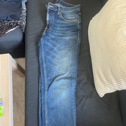 Välj bland snygga och välsittande jeans för herr i olika passformer och tvättar från en mängd olika varumärken. Vad sägs om Levi’s, Dr. Denim, Nudie och G-Star Raw? I vårt second hand-utbud hittar du enkelt jeans i din storlek till ett bra pris, utan att ens behöva lämna soffan. Bra för både plånboken och miljön!