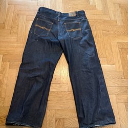 Välj bland snygga och välsittande jeans för herr i olika passformer och tvättar från en mängd olika varumärken. Vad sägs om Levi’s, Dr. Denim, Nudie och G-Star Raw? I vårt second hand-utbud hittar du enkelt jeans i din storlek till ett bra pris, utan att ens behöva lämna soffan. Bra för både plånboken och miljön!