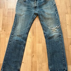 Välj bland snygga och välsittande jeans för herr i olika passformer och tvättar från en mängd olika varumärken. Vad sägs om Levi’s, Dr. Denim, Nudie och G-Star Raw? I vårt second hand-utbud hittar du enkelt jeans i din storlek till ett bra pris, utan att ens behöva lämna soffan. Bra för både plånboken och miljön!