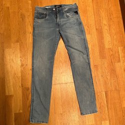 Välj bland snygga och välsittande jeans för herr i olika passformer och tvättar från en mängd olika varumärken. Vad sägs om Levi’s, Dr. Denim, Nudie och G-Star Raw? I vårt second hand-utbud hittar du enkelt jeans i din storlek till ett bra pris, utan att ens behöva lämna soffan. Bra för både plånboken och miljön!