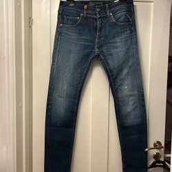 Välj bland snygga och välsittande jeans för herr i olika passformer och tvättar från en mängd olika varumärken. Vad sägs om Levi’s, Dr. Denim, Nudie och G-Star Raw? I vårt second hand-utbud hittar du enkelt jeans i din storlek till ett bra pris, utan att ens behöva lämna soffan. Bra för både plånboken och miljön!
