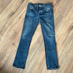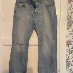 Välj bland snygga och välsittande jeans för herr i olika passformer och tvättar från en mängd olika varumärken. Vad sägs om Levi’s, Dr. Denim, Nudie och G-Star Raw? I vårt second hand-utbud hittar du enkelt jeans i din storlek till ett bra pris, utan att ens behöva lämna soffan. Bra för både plånboken och miljön!