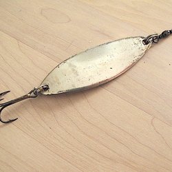 Gammalt hemmagjort skeddrag/fiskedrag i metall