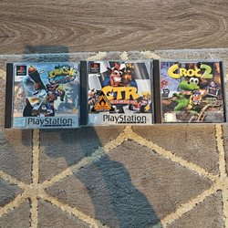 Playstation 1 spel: Crash Bandicoot Warped, CTR Crash Team Racing, Croc 2