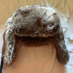 herr/dam mössa typ fuskpäls ,öronlappar brun/beige OANVÄND