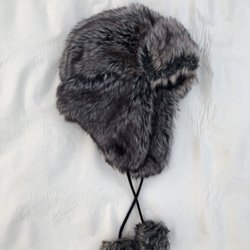 Pälsmössa Fuskpäls? svart med skärm och öronskydd med knytband