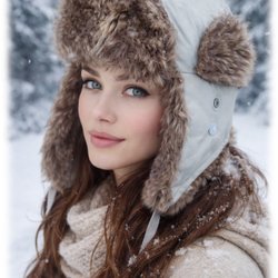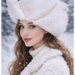 Vit vacker Tenson pälsig mössa med päsiga öronvärmare storlek M Fint skick