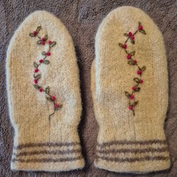 Stickade tumvantar i ull.