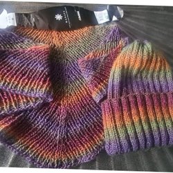 Handstickade Mössa och Sjal Set NYA
