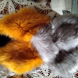 Gulgrå accessoar, syntetpälskrage/sjal