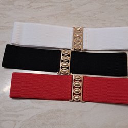 3-pack Elastiska Bälten med Guldfärgat Spänne - Vit, Svart, Röd