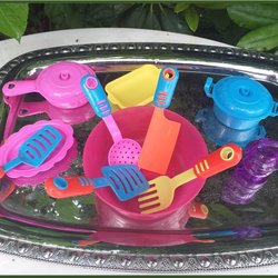 Matlagnings leksaker pannor lock hålsil stekspadar fatt mm för lek