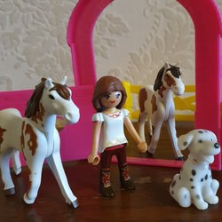 Hästset med Flicka, Hästar, stall och Hund