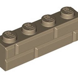 1st Kloss med prägling av "tegelstenar" 1 x 4 Dark Tan (LEGO Artnr: 6218456)