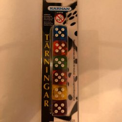 6 Tärningar till Yatzy m.m i olika transparenta färger, Spelregler till "10.000"