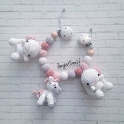 Barnvagnsmobil med virkade leksaker