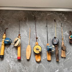Vintage fiskspö med trähandtag pimpelspö