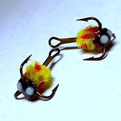 3 st FLUO RED/BONEHEAD Trebles, size #14