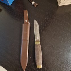 Kniv med trähandtag och skyddande fodral