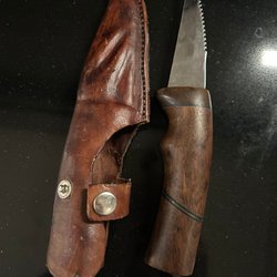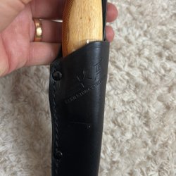 Kniv med läderslida Handtag i Björk. Se fyra annonser till jag lagt ut med kniv.