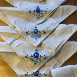 REA servetter blå blommor dukar duk nya med broderi linne 80 kr