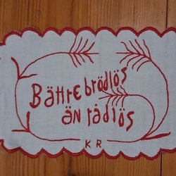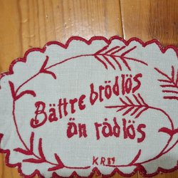 Handbroderad brickduk i rött 33 cm x 20 cm