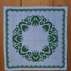 Linneduk handbroderad i grönt 25 cm x 25 cm