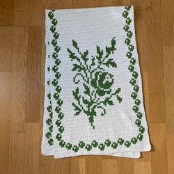 Virkad löpare/duk. Naturfärgat och grönt bomullsgarn. Rosor.
