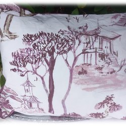 Örngott med japaninspirerat landskap med hängbroar vinrätt Vi har även grönt