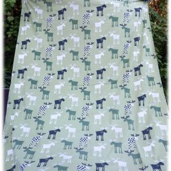 Påslakan med älgar i prickigt vit svart och med hjärtan mot grön bakgrund