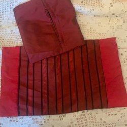 Kuddfodral i vinrött med svarta ränder