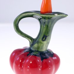 Vintage porcelain chili pepper oil/vinaigrette pot with stopper-chipped at top