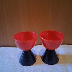 Tennmuggar/Snapskoppar med hållare från 80-talet